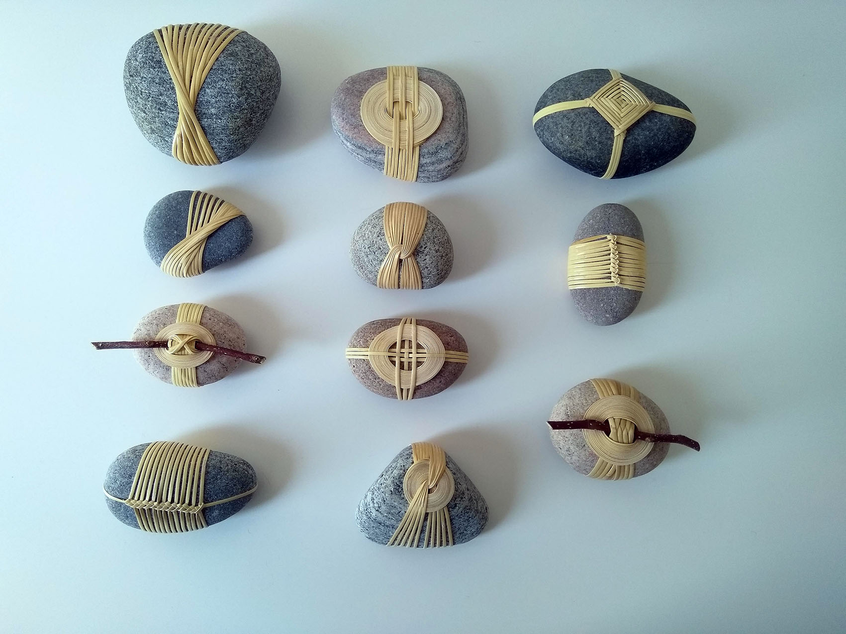 Muriel Brugman maakt mizuhiki-stenen. Mizuhiki is een traditionele Japanse kunst waarbij decoratieve koorden, gemaakt van gedraaid papier (washi) gebruikt worden om o.a. geschenken te omwikkelen. De koorden worden decoratief geknoopt en elke knoop heeft een eigen symbolische betekenis.