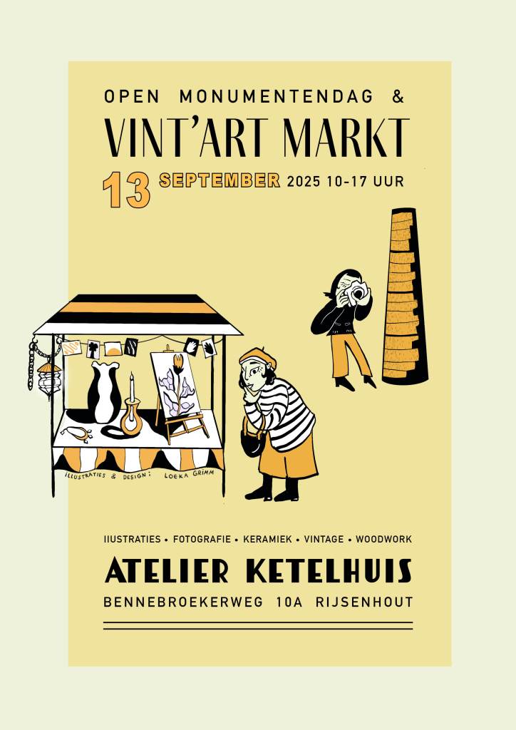 Onder de noemer Vint’Art Markt worden rondleidingen gecombineerd met een kleine kunstmarkt in en rondom het monumentale pand. Bij de kraampjes vind je een verscheidenheid aan vintage en creatief werk zoals als illustraties, fotografie, woodwork en (vintage) keramiek.