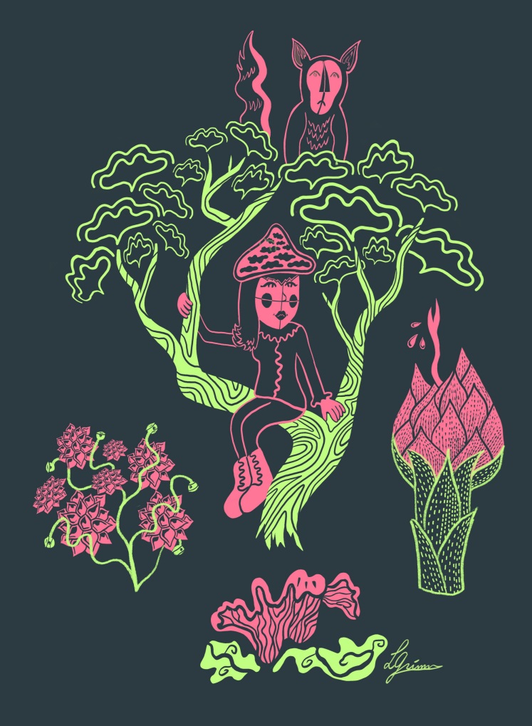 Loeka Grimm is grafisch kunstenaar en illustrator. Haar werk is geïnspireerd op de liefde voor flora, fauna en haar alledaagse omgeving. Loeka staat bekend om haar cartooneske stijl met humoristische kenmerken. Ze werkt veelal digitaal en verkent de laatste tijd ook nieuwe technieken om zichzelf voortdurend creatief uit te dagen.